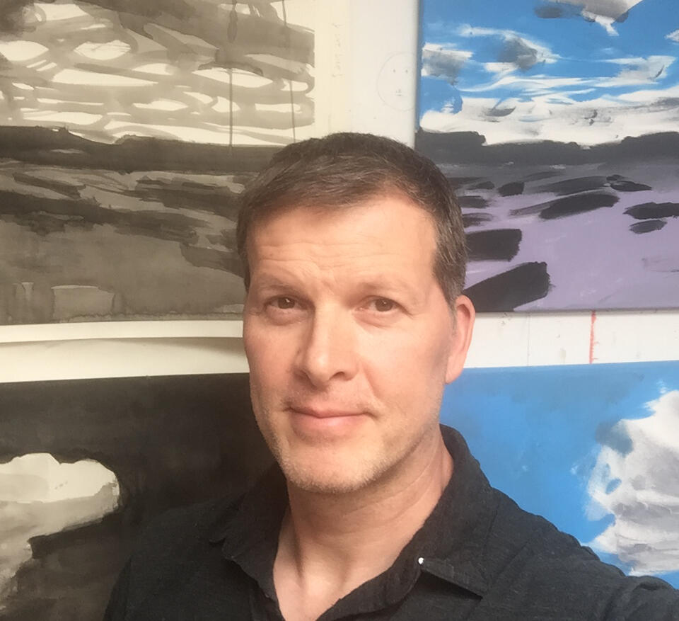 In founding Cielo Projects, creative director Bradley Reyes merges his love of travel and exploring airports with his 24 year visual arts career including 17 years working as a scenic sculptor building movie sets for feature films.His favorite vantage point? The view from the window seat en route to his next destination. Bradley has dedicated the past 12 years creating paintings and mixed media artwork inspired by these aerial perspectives and is committed to bringing them in monumental ways to fellow travelers in the wondrous halls of our incredible transportation hubs.